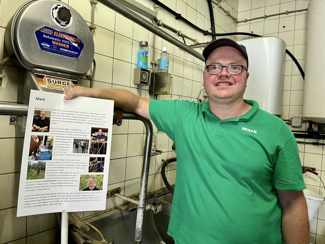 Het liefst gaat Mark mee naar de koeienkeuring, ook daar heeft hij zijn eigen werkzaamheden en geniet hij van de gezelligheid. De keuring in Leeuwarden zou hij voor geen goud willen missen.