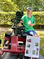 Gras maaien vind hij erg leuk, in de zomermaanden als het mooi weer is zit hij dan ook het liefst de hele dag op de grasmaaimachine, ondertussen ziet hij alles van de nieuwe gasten tot aan veranderingen hoe klein ze ook zijn. Dit vind hij leuk en houdt hem bezig. Als hij kon kiezen was hij het liefste buiten, behalve als het regent. Hij vind het dan leuk om in de accommodatie bezig te zijn met harde muziek op. Hij maakt de bar schoon en dweilt de vloer. Relaxen en knuffelen met onze oudste koe en spelen met de honden zijn favoriet voor hem.